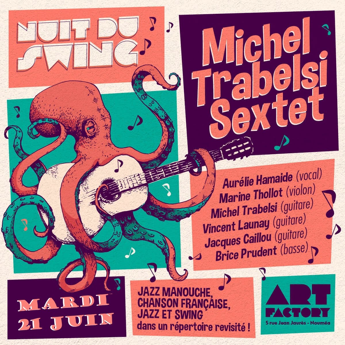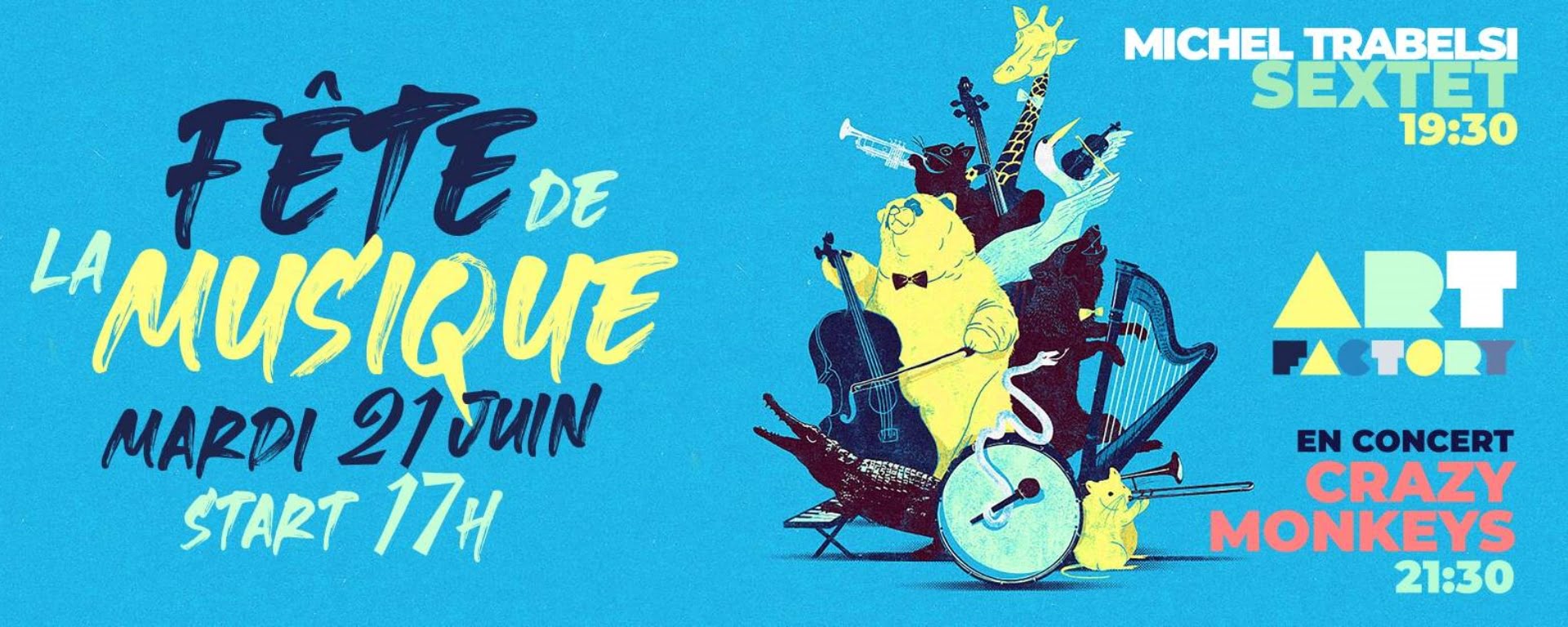 La fête de la musique débarque chez Art Factory et ça va swinguer en première partie de soirée à partir de 19h30 avec le ★ MICHEL TRABELSI SEXTET ★ et son répertoire Jazz Manouche, chanson française, jazz et swing des années 30 à 50. ![]()