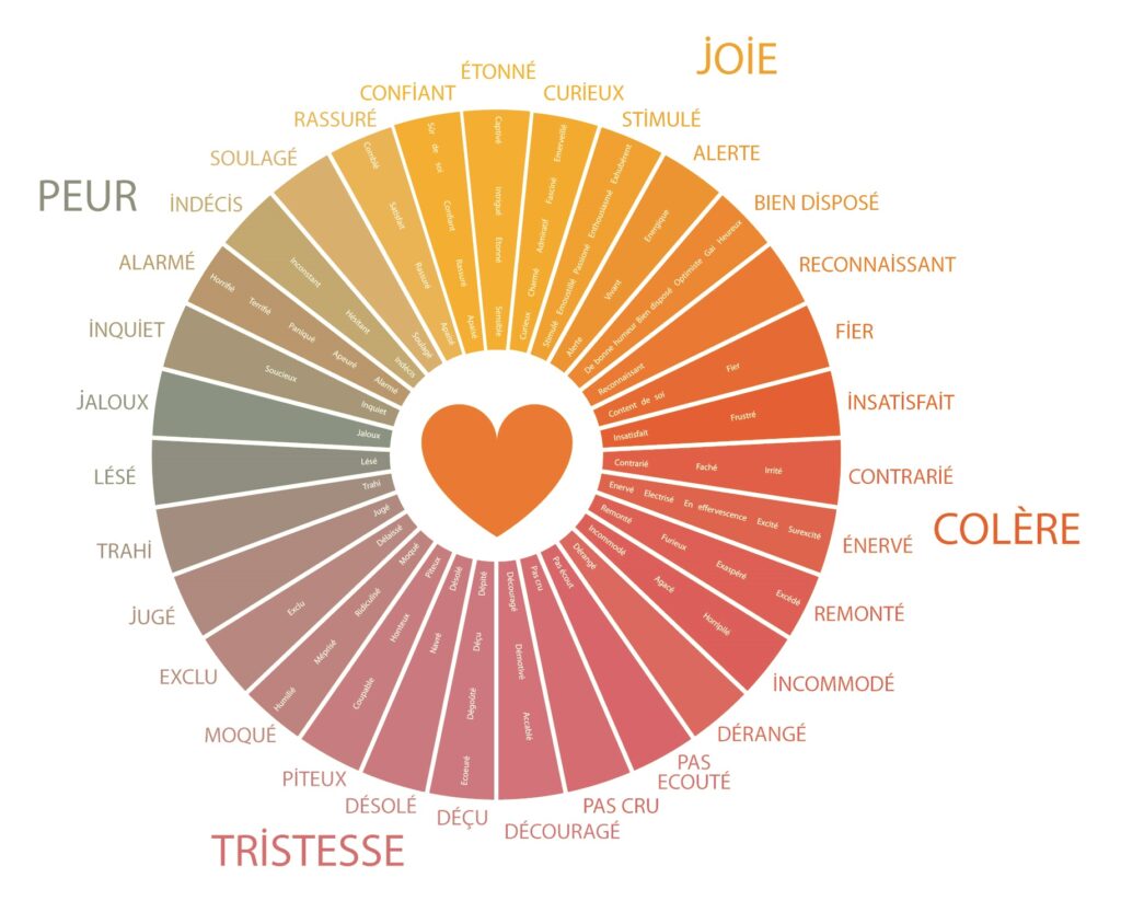 La peur, la tristesse, la joie, la colère, la surprise et le dégoût sont les six émotions fondamentales, communes à toutes les cultures, énoncées par Paul Ekman, psychologue Américain. Les nuances émotionnelles sont, elles, infinies, liées à notre expérience et propres à chacun.
