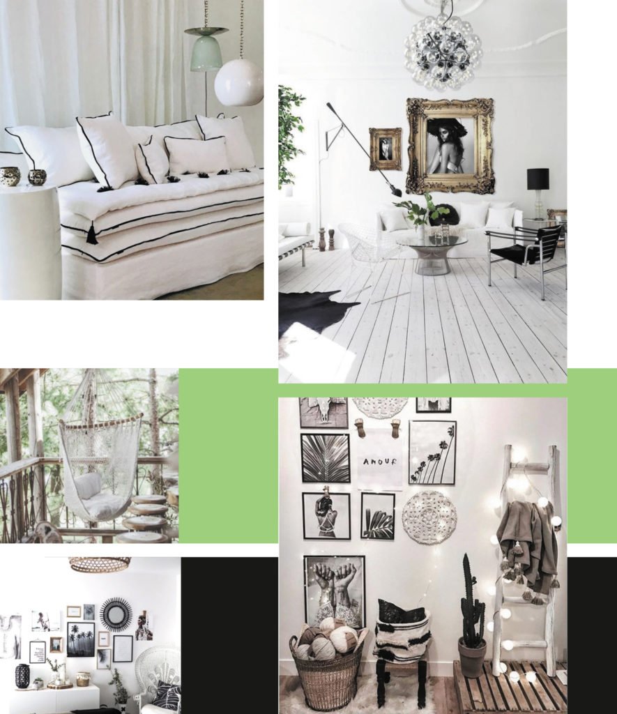 L’esprit bohème s’adapte mieux lorsqu’il est en noir et blanc, le bois associé viendra y mettre la touche finale afin d’harmoniser l’ensemble et le rendre chaleureux. Dans tout les cas cela donnera une touche cosy à votre intérieur…