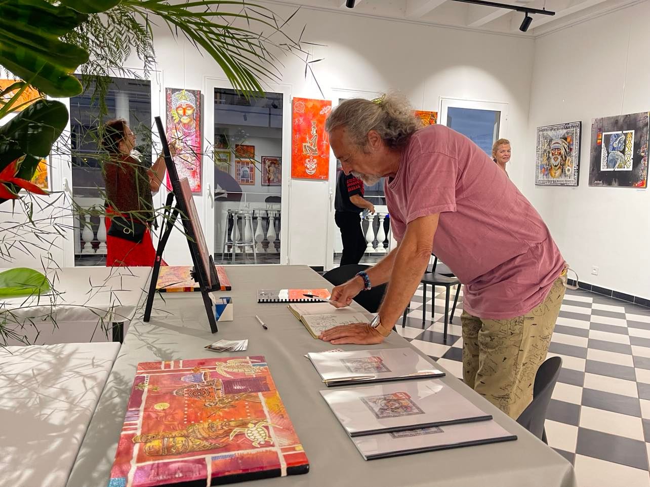 L’artiste peintre Aime Nangard a inauguré la nouvelle salle d’exposition de l’Art Factory à la Maison Cheval. Il y expose une soixantaine d’œuvres jusqu’au 16 février. Des œuvres hautes en couleurs et riche d’univers aussi variés que les paysages calédoniens, les animaux, le monde mélanésien ou encore les fonds marin… L’artiste originaire du Vanuatu nous embarque dans un monde chaud et lumineux.