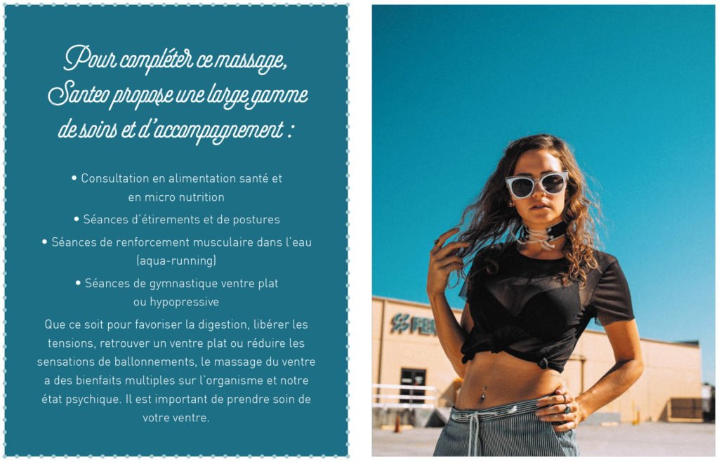 Le ventre est considéré comme notre deuxième cerveau car 95% de la sérotonine y est créé (la sérotonine a un lien direct avec notre humeur et notre comportement). L’anxiété, le stress, la fatigue ou une alimentation inadaptée génèrent des maux de ventre qui peuvent être reflet d’un mal-être intérieur. Il est possible de soulager ces sensations désagréables, voire douloureuses grâce au massage du ventre. Nous avons testé pour vous le massage du ventre fait à SANTEO (prix 7000 Cfp)