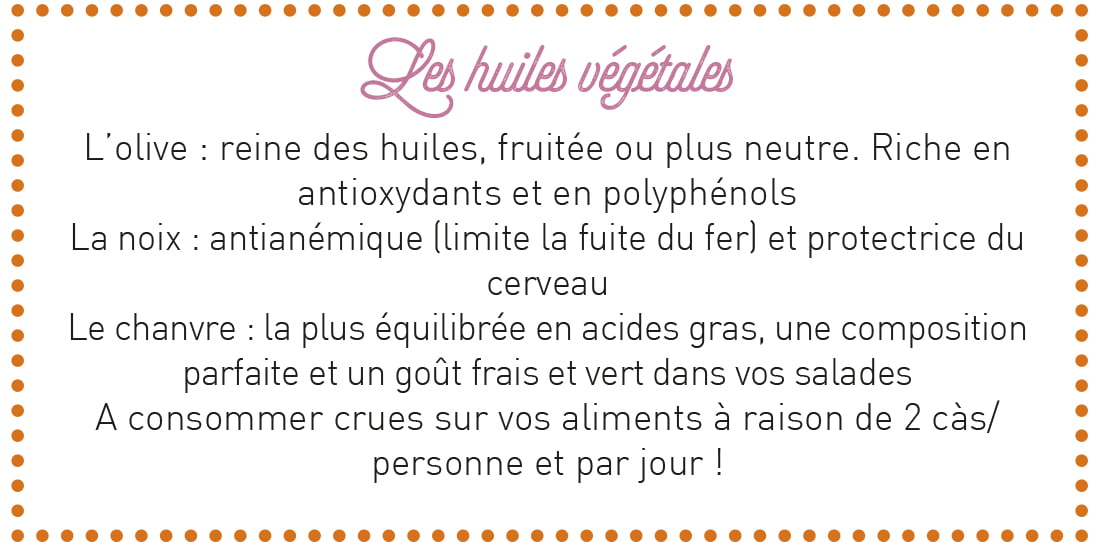 • Les huiles végétales (bio et première pression à froid)