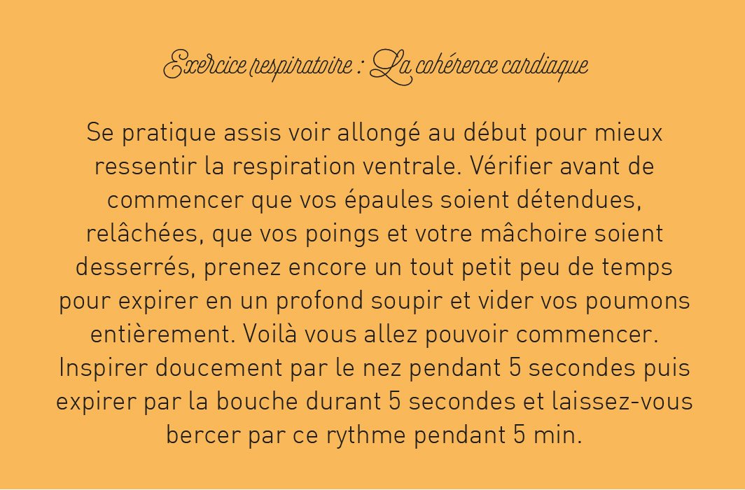Prenez une pause, un temps rien qu’à vous, pour souffler et respirer en conscience. Comme une zone tampon entre vos activités, apprenez à vous octroyer 5 min 3 fois par jour pour respirer.